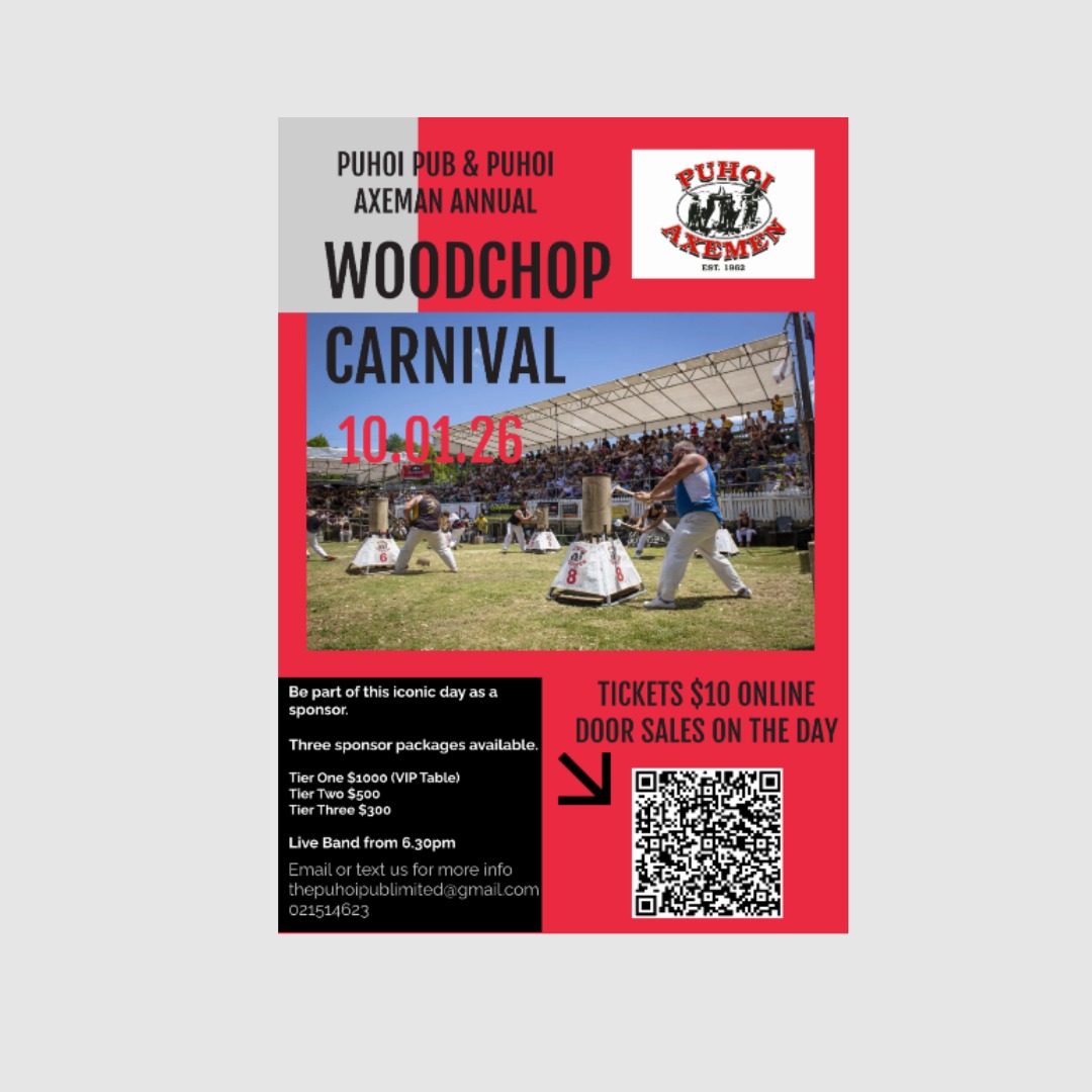 Puhoi Axemen`s club is hosting the largest woodchopping event in the Northland Calender in association with The Puhoi Hotel and Stables.