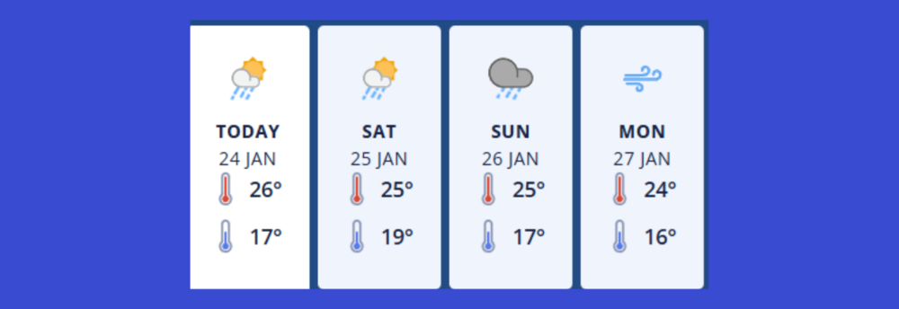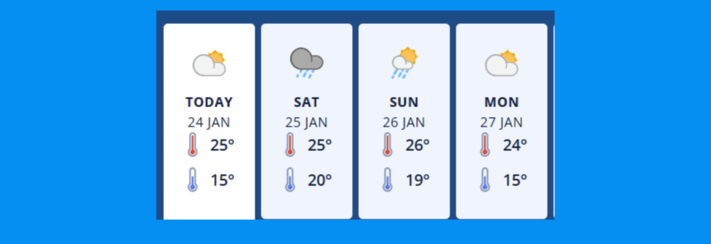 Friday 24th Jan - Fine apart from morning cloud and the chance of a late afternoon or evening shower. Light winds, afternoon sea breezes.