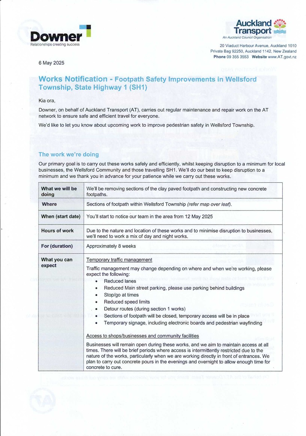 This long-awaited change marks a major improvement for Wellsford’s town centre. Thanks to Auckland Transport, the Rodney Local Board, and the dedication of community advocates, a safer, smoother, and more practical footpath is on the way—just in time for winter.