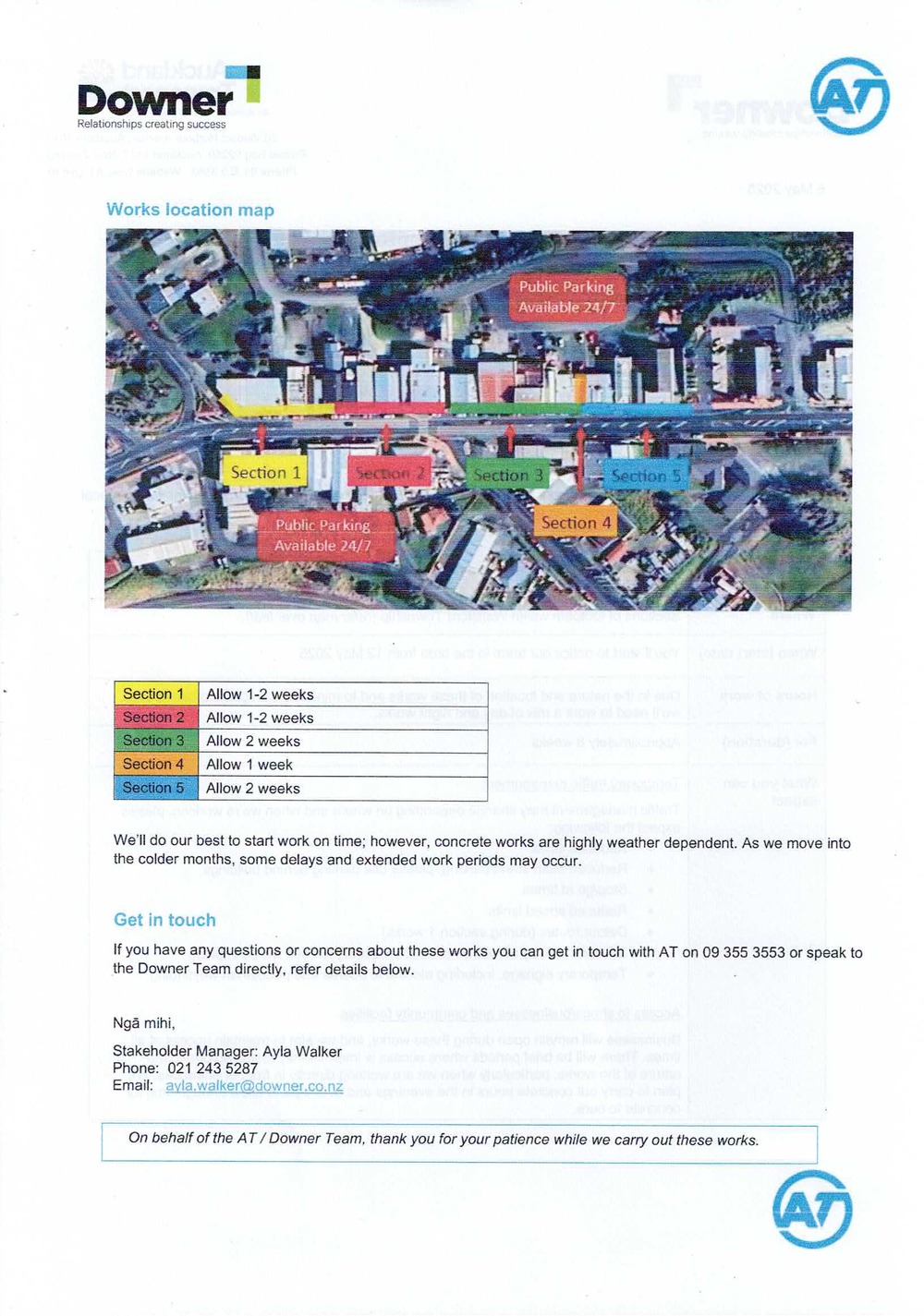 AT has already marked out services such as power, gas, and drainage, and a community meeting with project representatives has helped ensure a clear understanding of the process ahead.