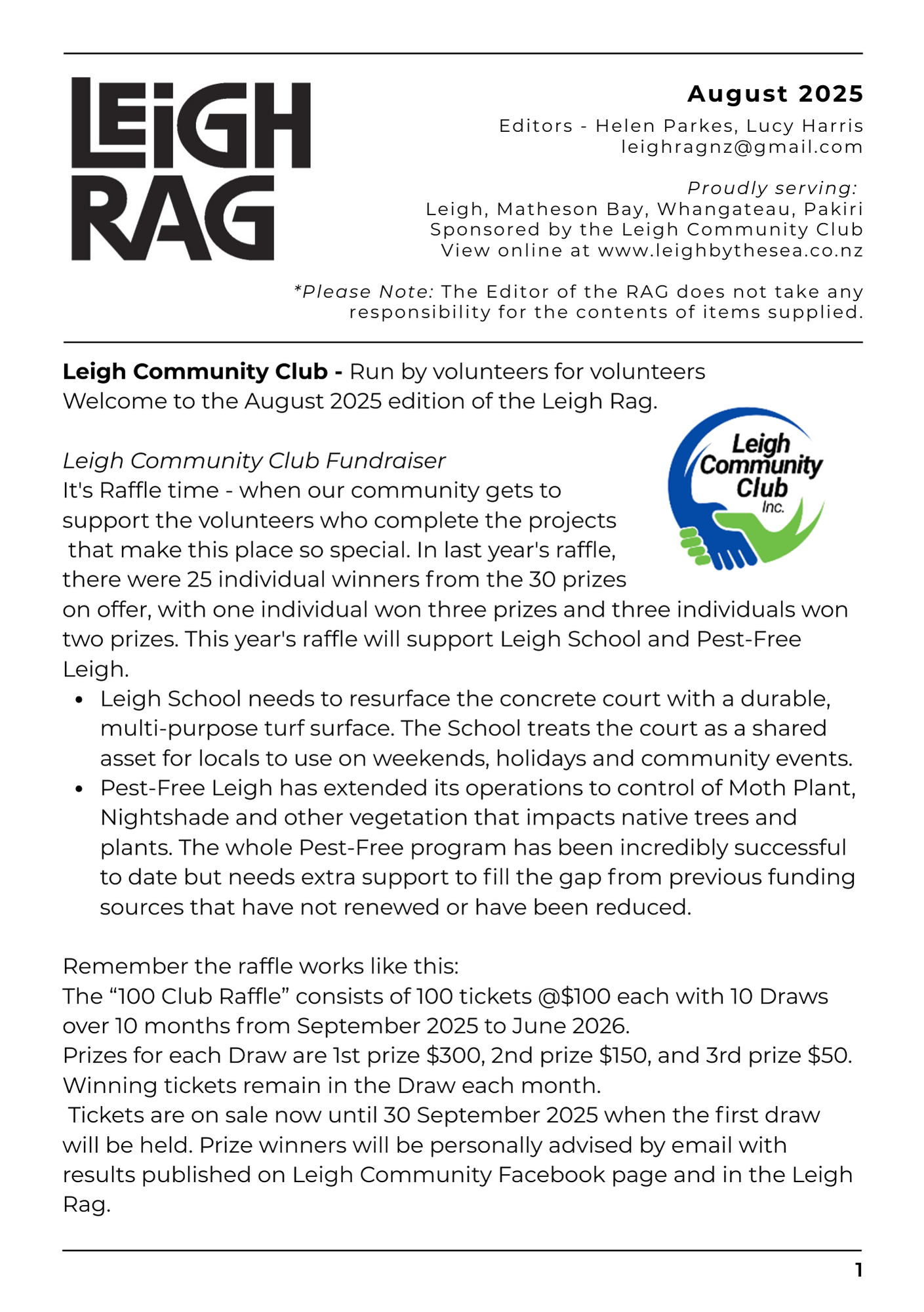 Leigh Rag August '25 - Your local Leigh & Whangateau news