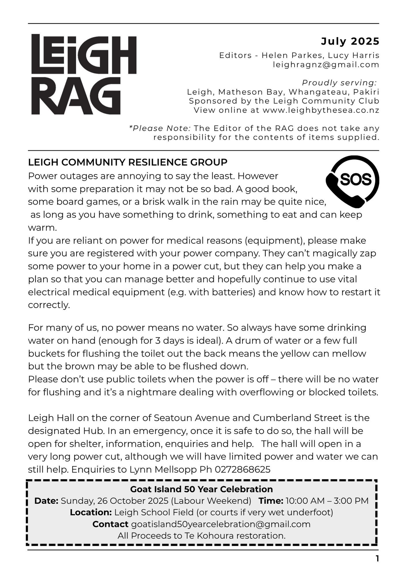 Leigh Rag July '25 - Your local Leigh & Whangateau news