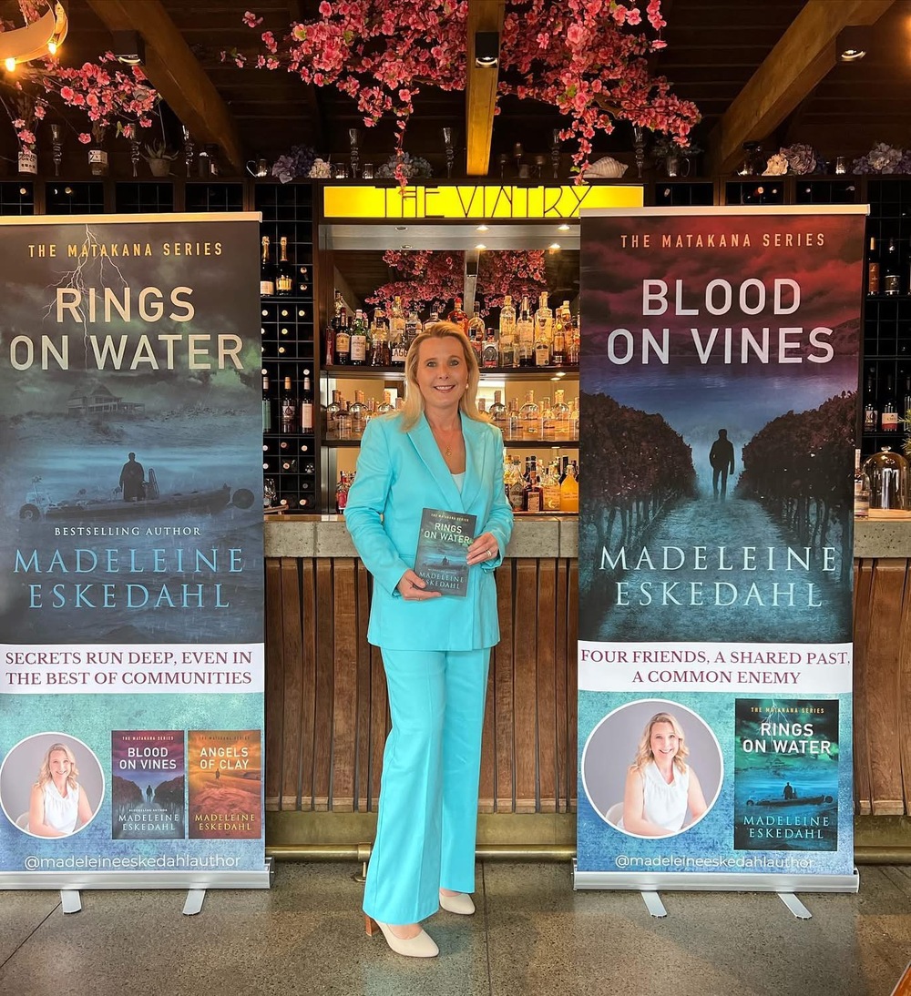 Madeleine Roberts (Eskedahl) is a Swedish-born crime fiction author who now calls Leigh home. Before making the move to New Zealand, Madeleine spent many summers in the picturesque Matheson Bay, which would later inspire her Matakana Series. Her first thriller, Blood on Vines (2021), debuted at #2 on the Kete New Zealand Bestsellers List and was voted onto the Whitcoulls Top 100 List for 2022/23. Its sequel, Rings on Water, also made an impact on the bestseller list, and the third instalment, Angels of Clay, is set for release later this year.