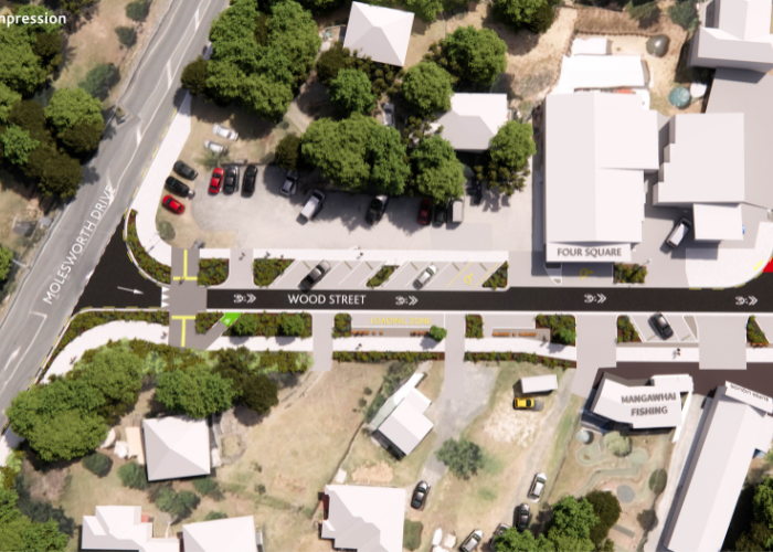 Construction for the permanent upgrade of Wood Street and the surrounding area is scheduled to begin on Monday, 31 March 2025. The project, which has been awarded to HEB Construction, will include upgrades to the stormwater network, as well as permanent designs for Wood Street, the old fire station site, and the back carparking area and playground (behind Gringas).