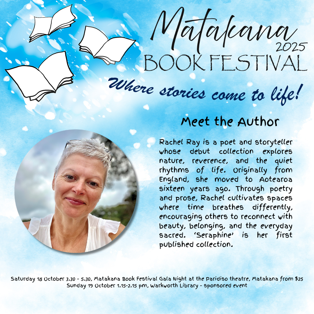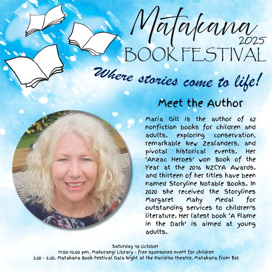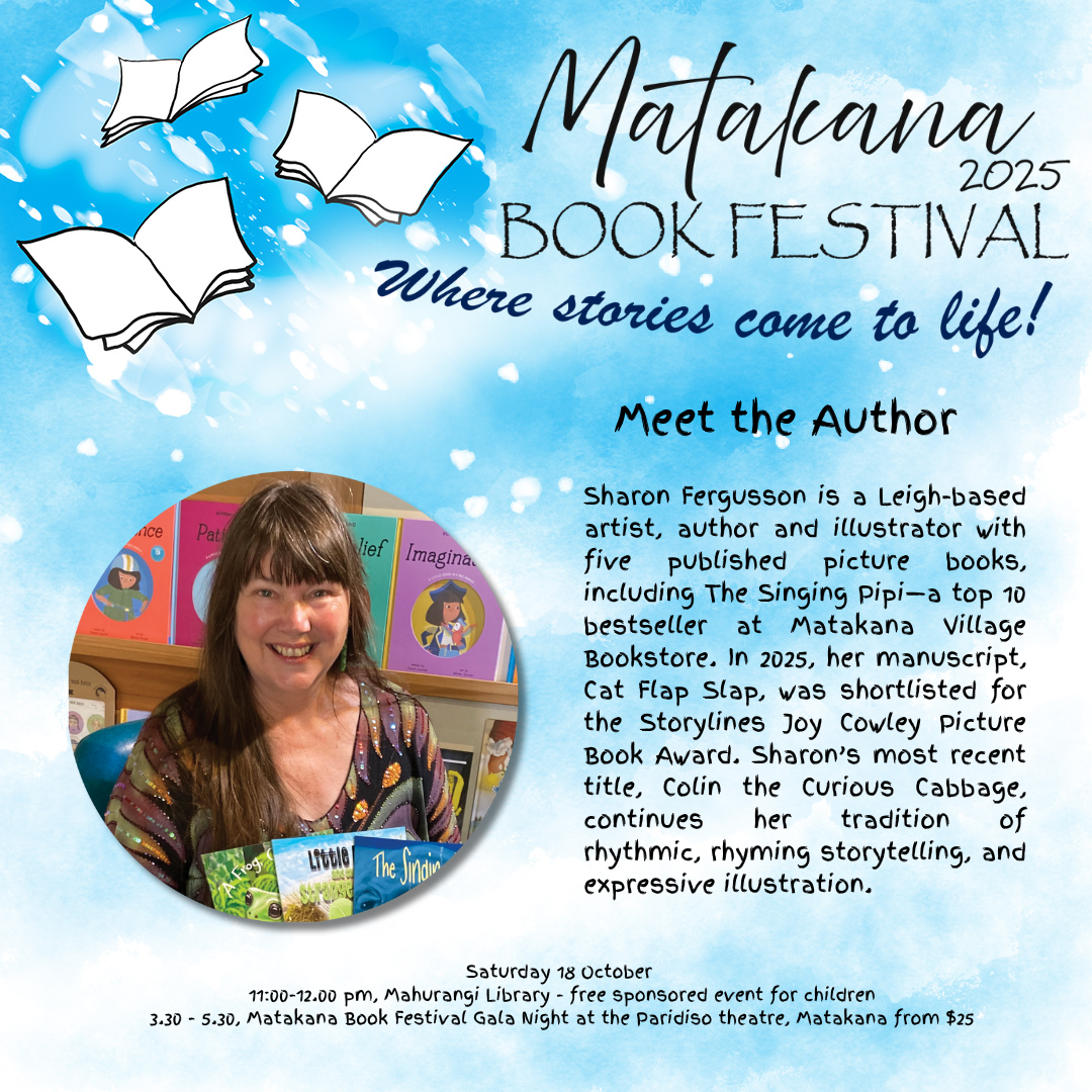 A glance at the authors hints at the stories in store. Eskedahl’s Matakana-set thrillers have introduced readers around Aotearoa to vineyards with secrets; Jacobs has long been a champion of New Zealand food culture; Gill’s non-fiction makes complex subjects sing for young readers; Major mines the seams of the past; Fergusson brings an illustrator’s eye to the page; Ray keeps the music of language close. It’s an appealing mix that should coax both book-club regulars and the festival-curious from their couches. Matakana Book Festival Facebook