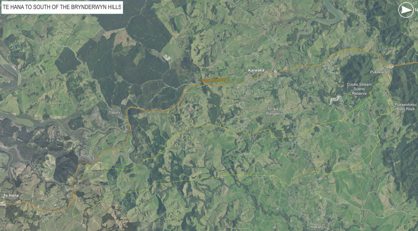 Te Hana to South of the Brynderwyn Hills preferred route map