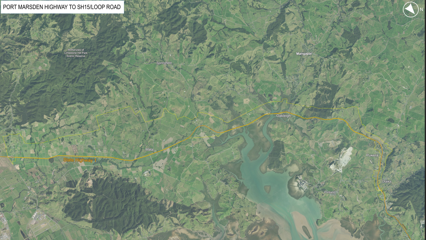 Port Marsden Highway to SH15/Loop Road preferred route map