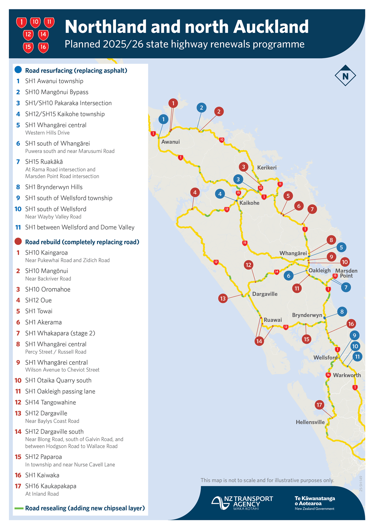 Thank you for your patience while we get this work done. For full programme details, visit the Northland state highway maintenance programme website.