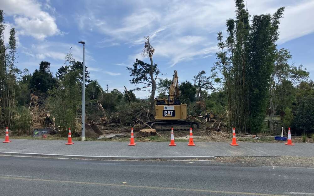 Fallen trees are cleared on Molesworth Drive. Photo: RNZ / Leonard Powell