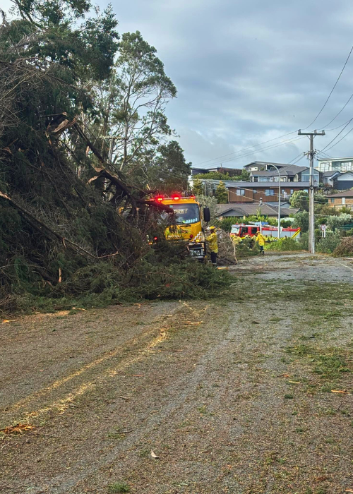 Many roads in and around Mangawhai Village remain blocked by fallen trees and debris, including sections of Moir Street and Molesworth Drive. Emergency services have urged residents to stay off the roads to allow their teams to respond efficiently.