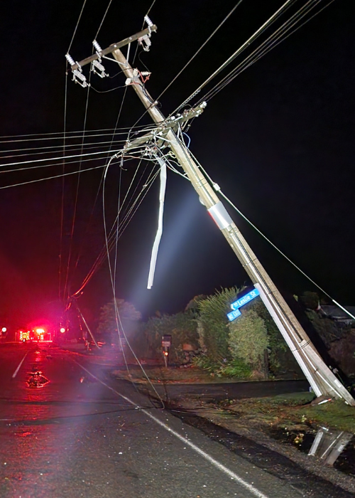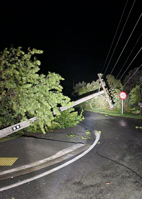 If you are on Old Waipu Road or Moir Street in the Mangawhai Village area - please do not cut, move or touch power lines - treat all lines as live.