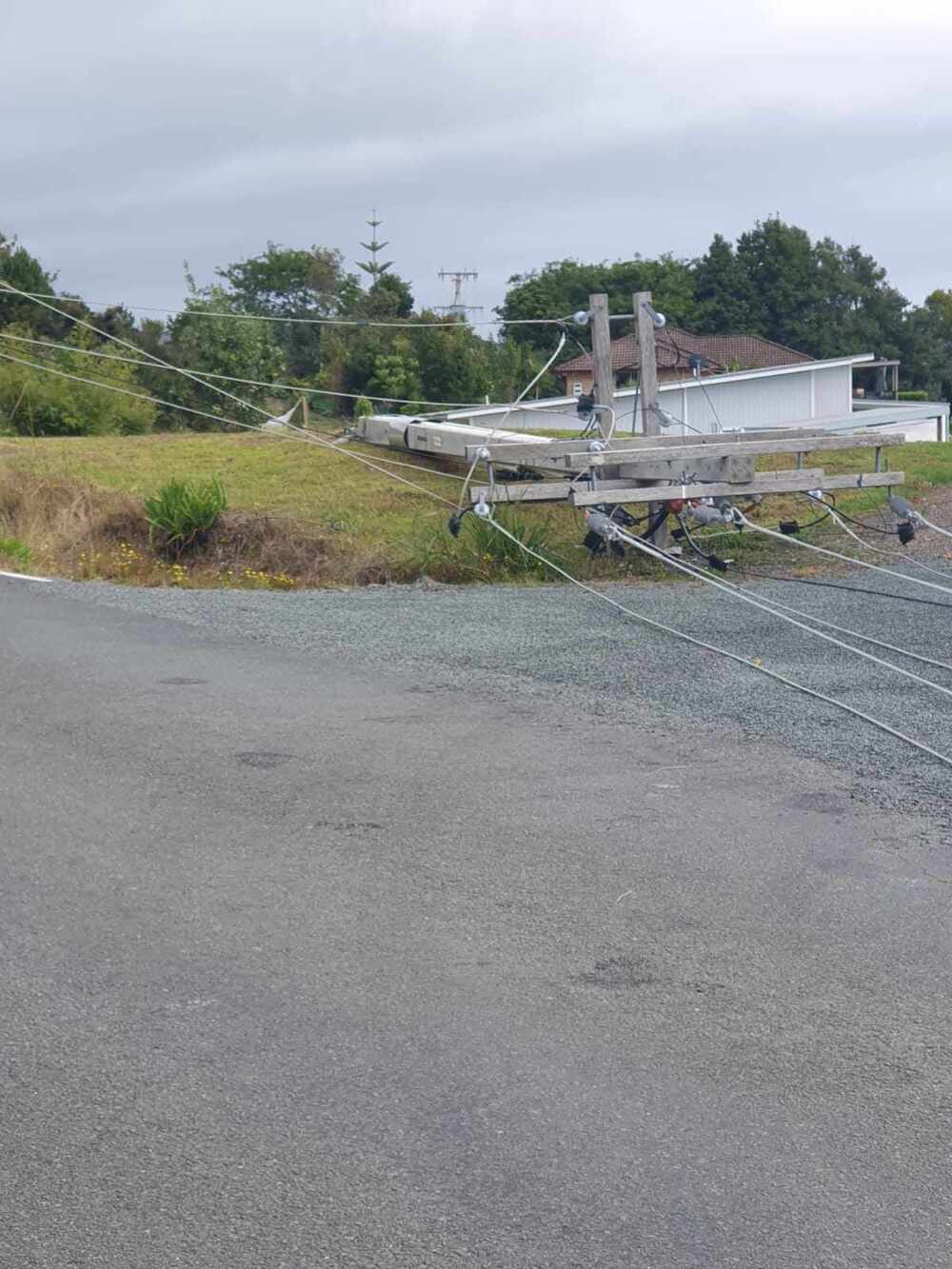 Power to Lang's Beach residents has now been restored. Power to some parts of Mangawhai is still being worked on with extensive damage to power poles.