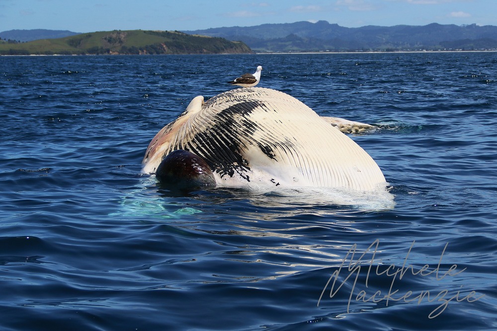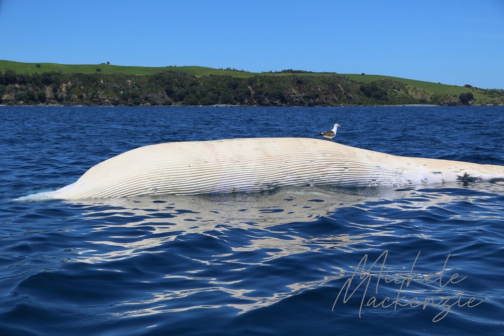 A massive dead whale has been spotted floating in the waters near Tāwharanui, off the coast of Omaha.