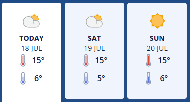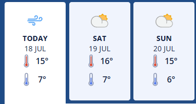 Friday 18th July - Partly cloudy and the chance of a morning shower. Southwesterlies.