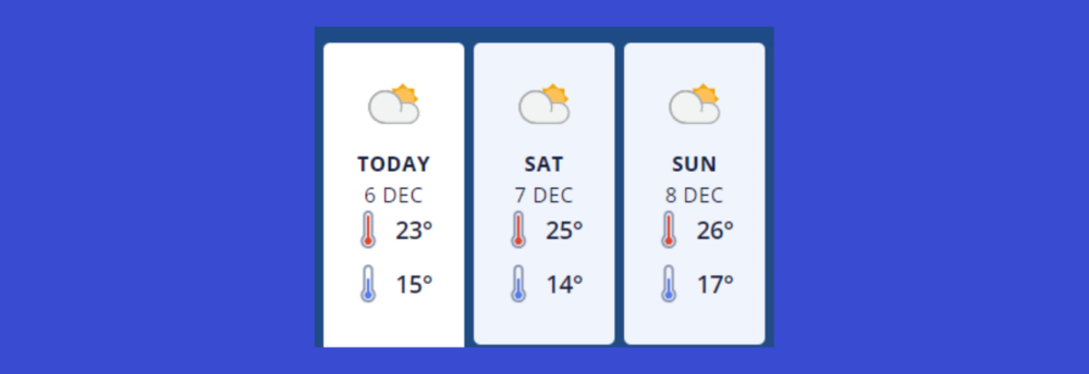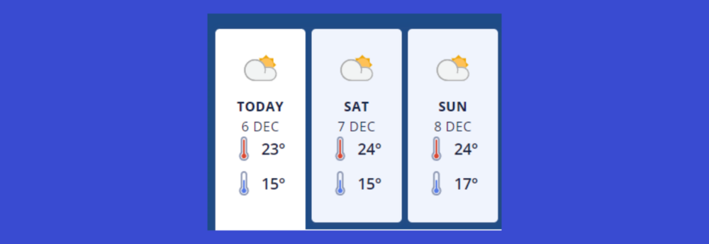 Sunday 8th Dec - Partly cloudy. Northerlies developing.