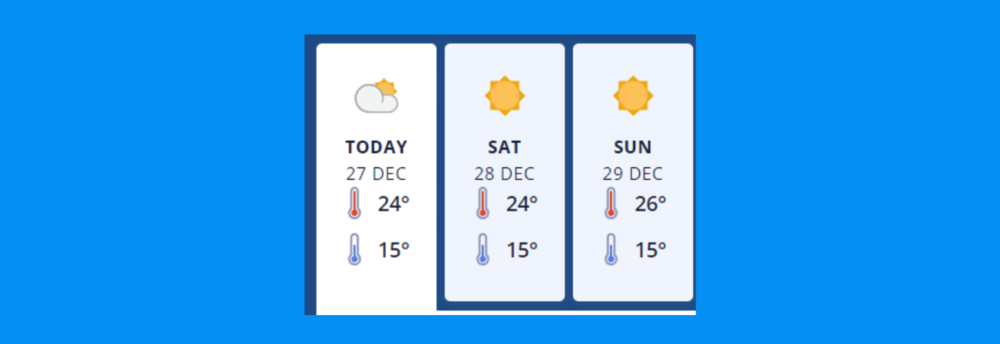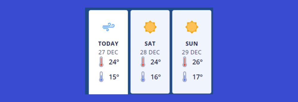 Sunday 29th Dec - Fine. Southwesterlies, becoming fresh.