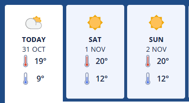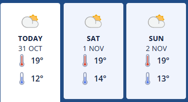Friday 31st October - Mainly fine, some morning cloud. Southerlies for a time during the day.