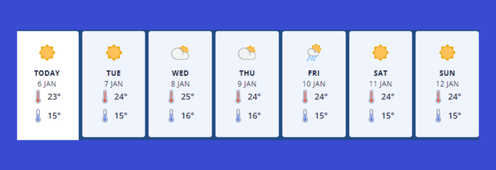 Wednesday 8th - Partly cloudy, with the chance of a shower in the afternoon. Southwesterlies, becoming fresh.