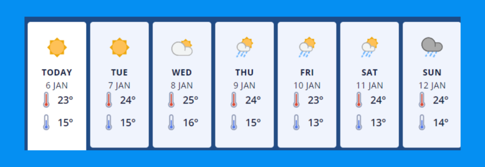 Wednesday 8th - Partly cloudy. Southwesterlies, becoming fresh.