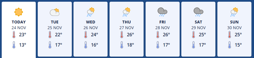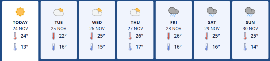 Monday 24th November - Fine. Southeasterlies for a time in the afternoon.