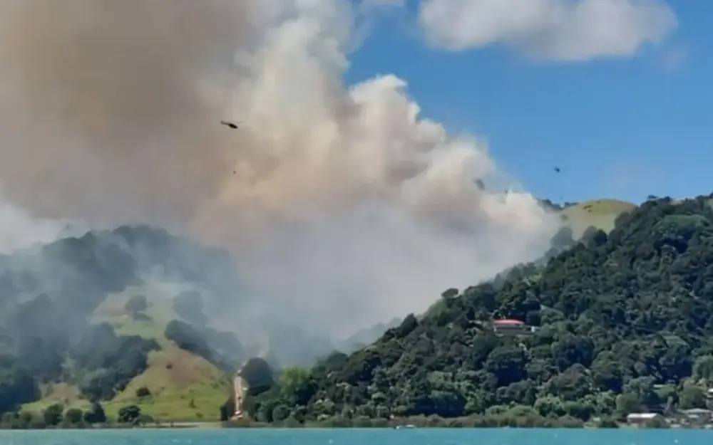 At the peak of the fire on Thursday afternoon, Whangārei Heads Rd was closed to traffic and two homes were evacuated.