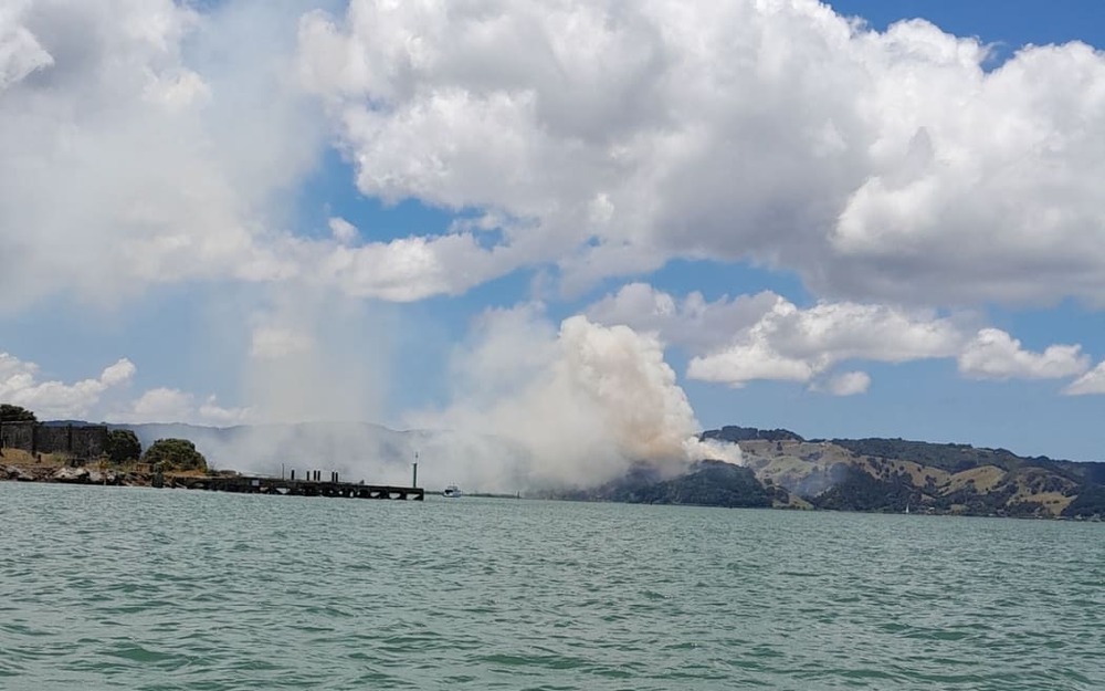 Smoke at Whangārei Heads from a vegetation fire could be seen from far away on Thursday. Photo: Supplied / Diane Green