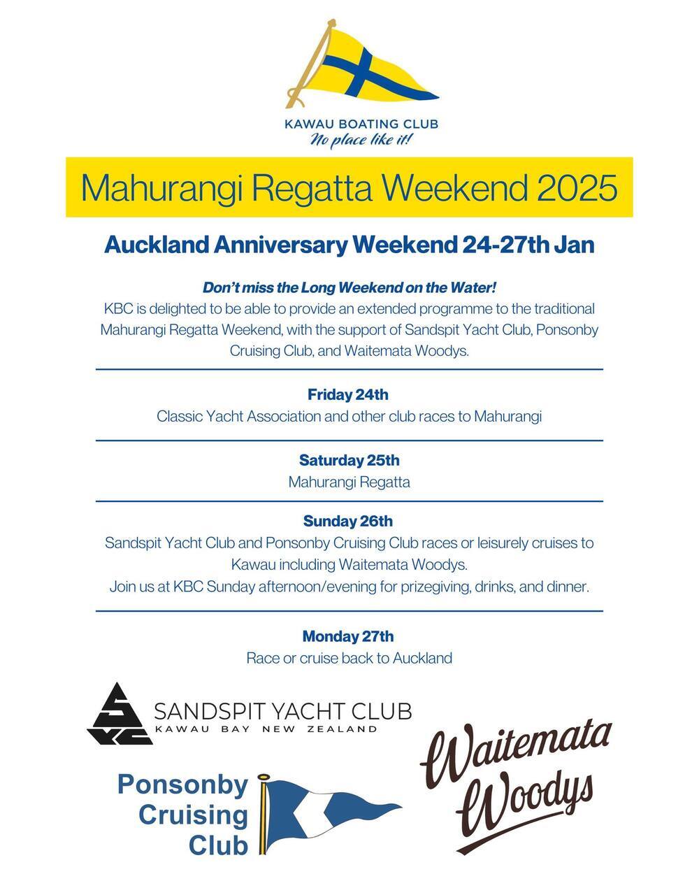 Mahurangi Regatta Weekend 2025 from Friday until Monday.