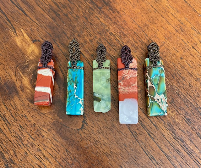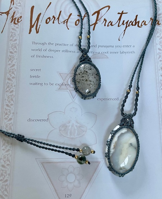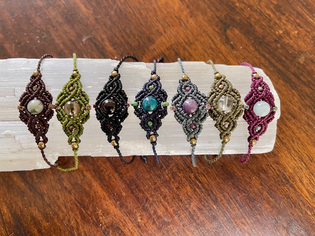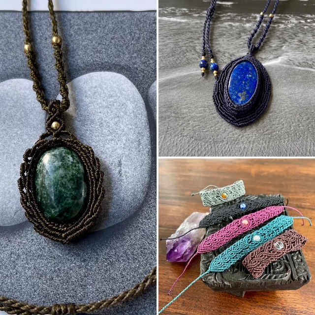 Her approach is rooted in the ancient art of micro-macramé, merging old knotting techniques with modern spiritual sensibility. In her hands, cord and crystal become conduits subtle reminders of balance, presence, and healing.